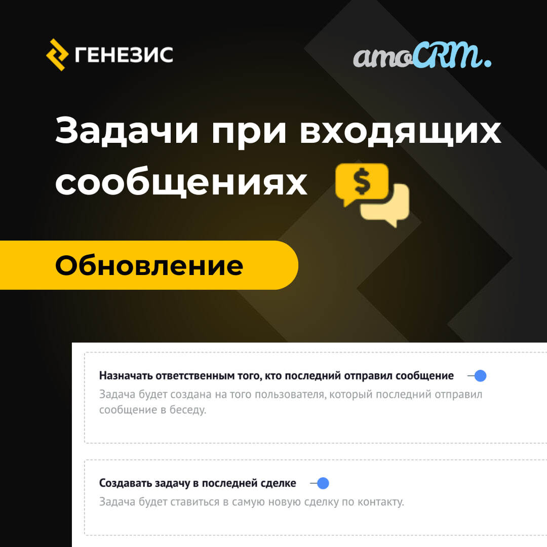 ✔️ Автоматизация — задачи создаются сами при новом сообщении.