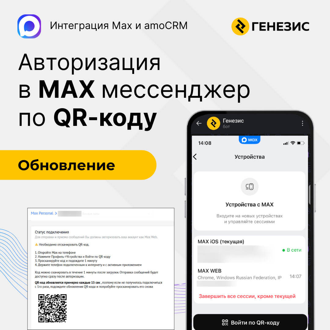 В интеграции Max Personal появилась авторизация по QR-коду.